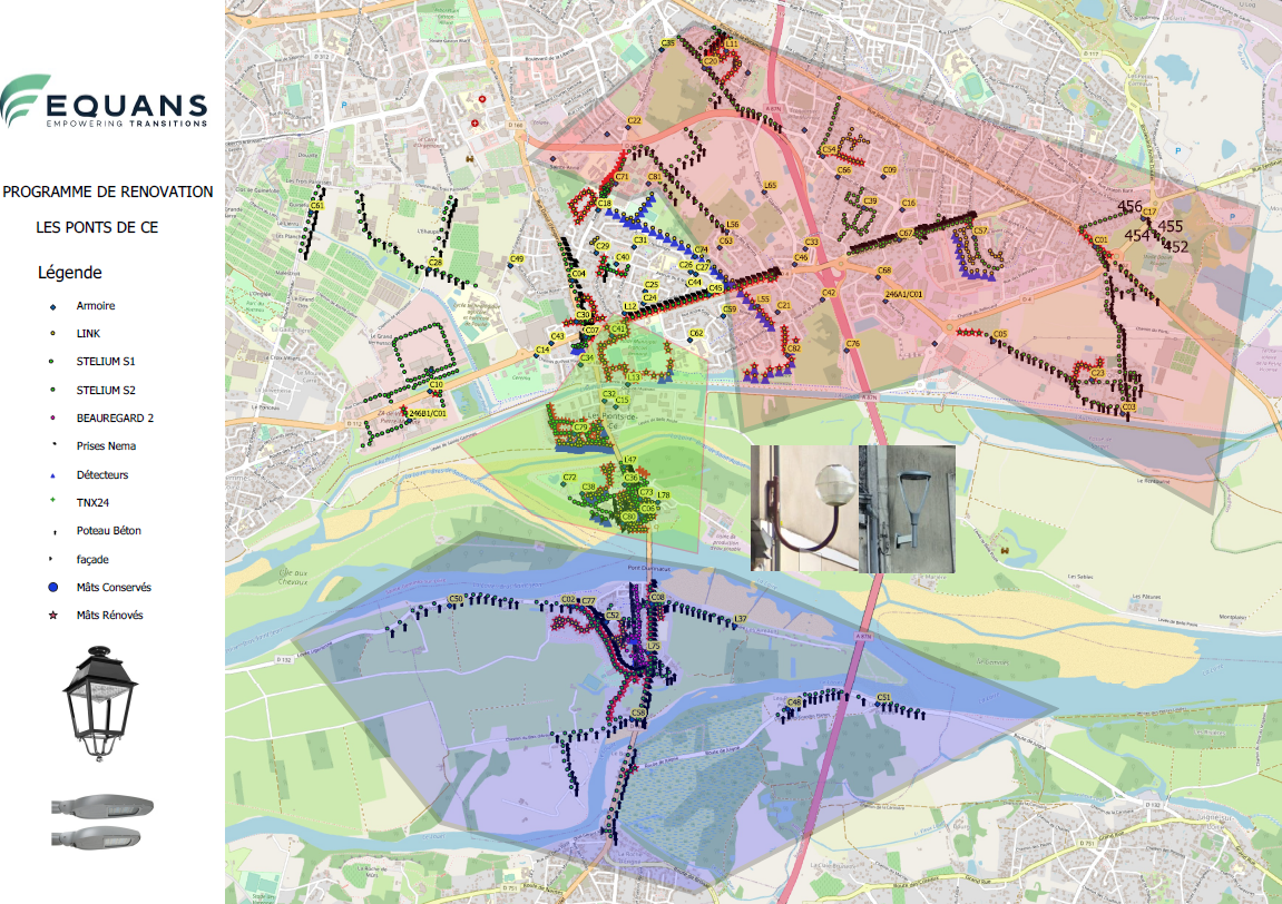 Zone EST (rouge) en premier de janvier à février Les premiers travaux : le secteur de la Guillebotte avec le remplacement des bornes lumineuses situées dans le chemin piétonnier compris entre l’avenue Gallieni et l’avenue de la Guillebotte.