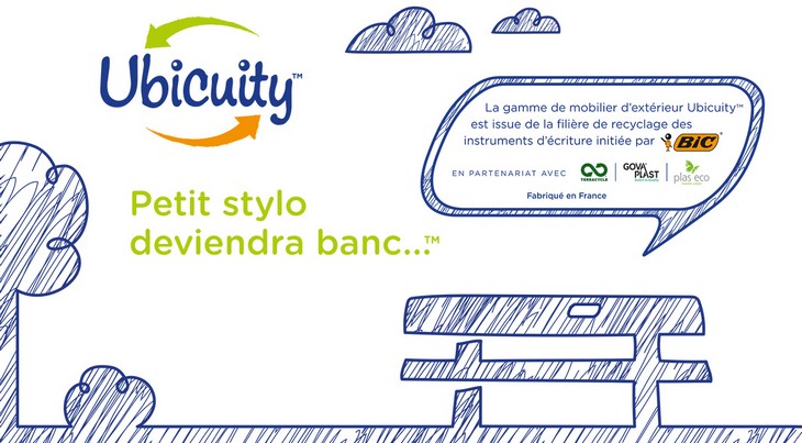 Nous vous proposons de récupérer tous vos vieux stylos pour les transformer en mobilier extérieur (banc, tables de pique nique..). De plus, pour chaque stylo récolté, un centime sera reversé à une association locale.