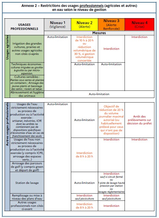 Du fait de la pluviométrie sur le département les collectivités et les particuliers doivent en mettre en place des mesures d’économie d’eau, de même que les professionnels.