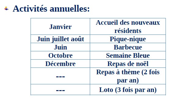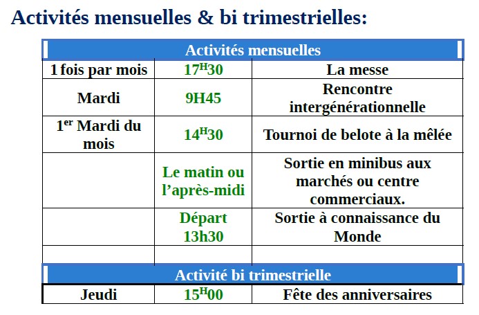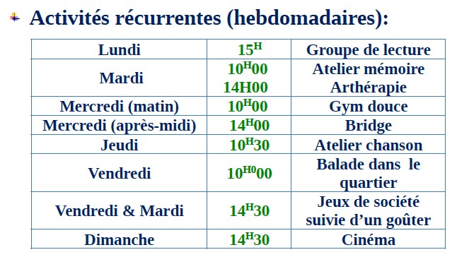 - une chambre d’hôte pour les familles/amis des résidents ou appartement meublé en pension complète